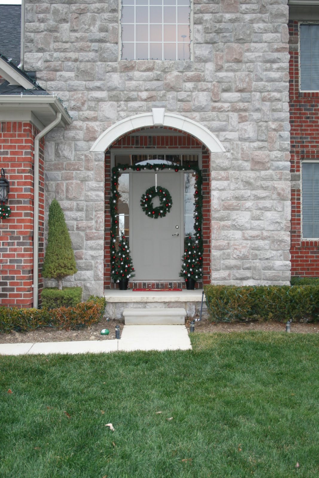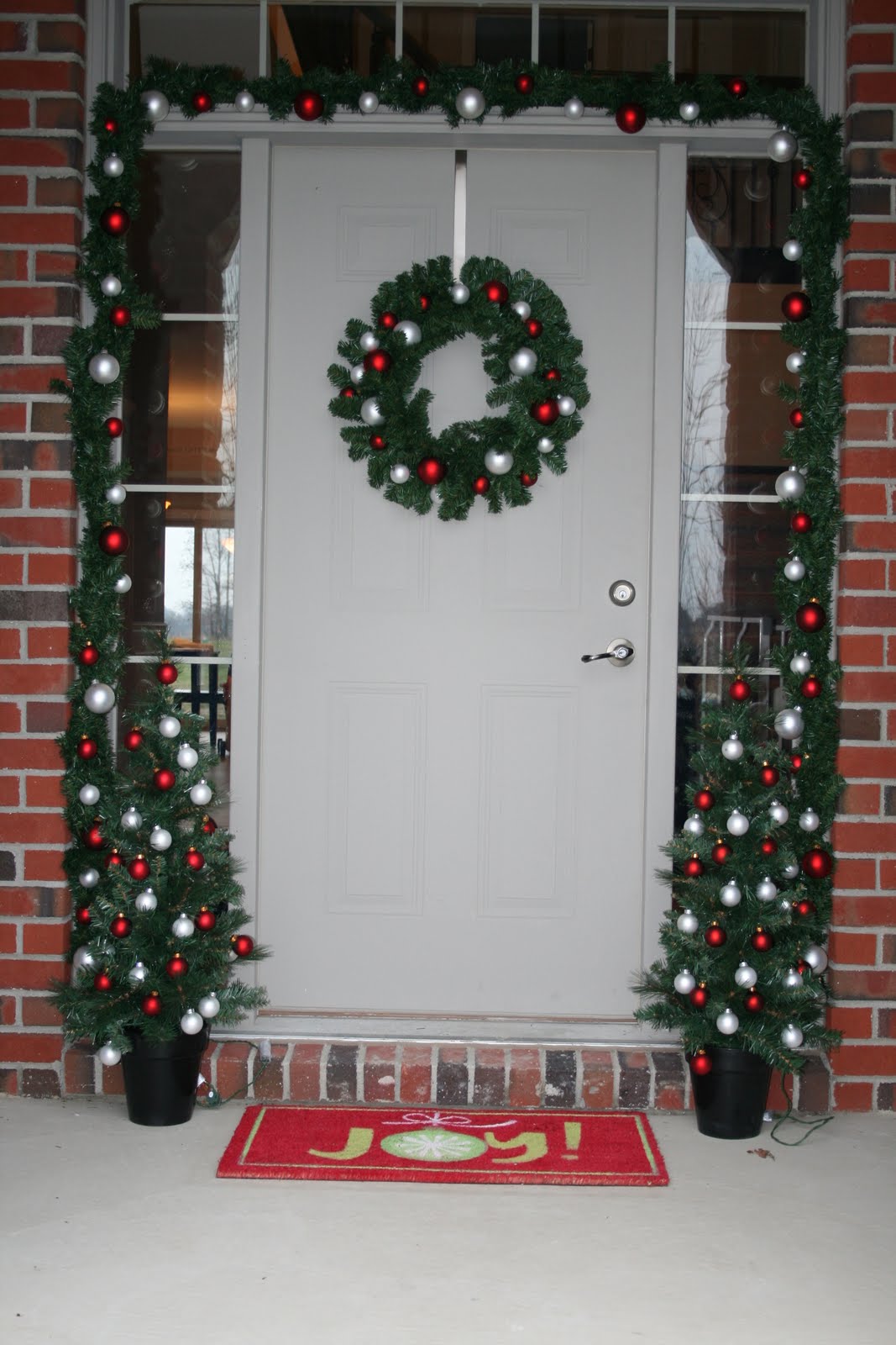 I know it’s still a little early for outdoor Christmas displays (typically I stick to the after Thanksgiving rule), but I just couldn’t wait this year. I showed you earlier this week how I made my wreath and garland and I used to pre-lit trees from Target to finish off the display. The trees came two in a package, so it worked out perfect. I added the bulbs to them so that they would match the other items. I would still like to somehow “dress up” the planters the trees are in, but I am not sure what I want to do yet. Maybe just add ribbons / bows to them? And the doormat is more functional than part of the display.