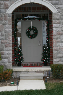 The garland was too heavy to hang using hooks with just stickies on the back, so my husband drilled holes and attached permanent hooks to the wood surrounding the door. I hate to have to do things like this, but it will make things a lot easier in the future and I will not have to deal with coming home to sections of the garland hanging down.