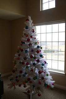I have been wanting a white Christmas tree for years. For whatever reason, I never actually went out and got one. I guess I was afraid it would look dated and out of place in my house. But this year, I decided I wanted to do a “matchy-matchy” tree and a “family” tree. I was at Target one day and saw a cool fake white tree and just went for it! I debated about decorating it with brightly colored ornaments or green and red ornaments. In the end I went with the brightly colored ones. I am hoping to snag some more ornaments in different shapes during the after Christmas sales for a little more variety. Maybe next year I will do something with garland or ribbons or something. We’ll see!