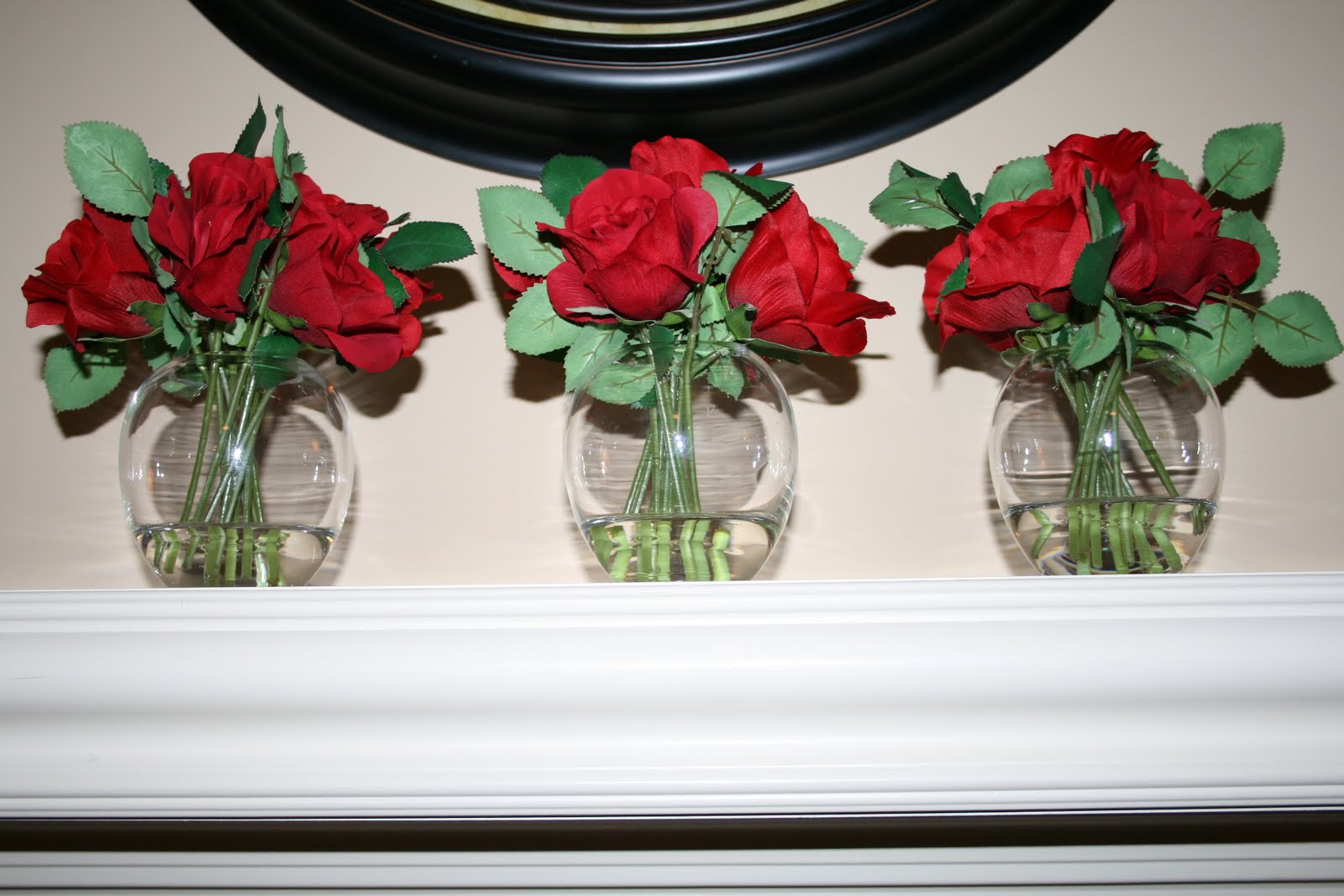 I also toyed with the idea of using tall clear glass vases on either end and filling them with stemmed red roses, however, I couldn’t find any silk ones I liked. Where can I fund something like this?