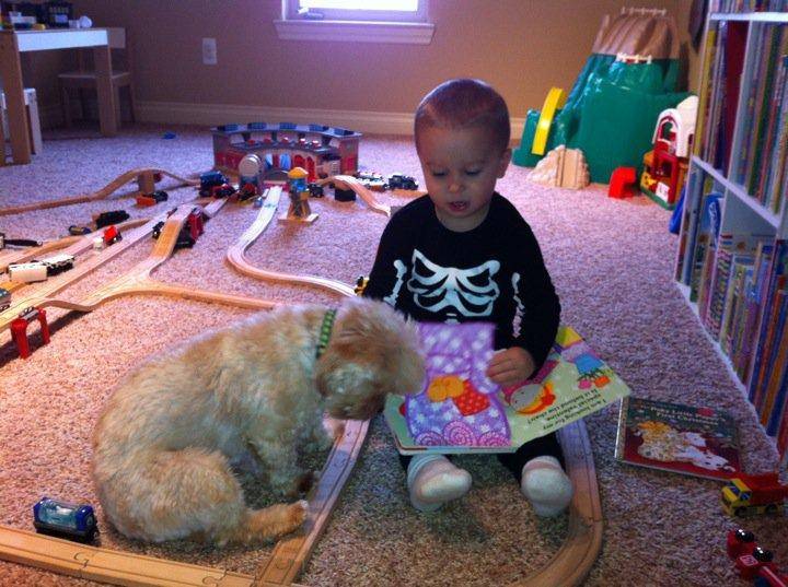 Baxter has let L walk him ever since L himself could walk. Baxter knew better than to run and pull on the leash while L was holding it. I don’t know how, but somehow both of the furries always knew better than to mess with L. They never touched his toys and never cared when Lucas would play in their food bowls or steal their toys! I think once L started feeding them table food, Baxter decided that L was a good addition to the family. Baxter is always up with a car ride with L and happily hops in. The neighbors think they are hilarious when they drive around together. And if he’s really really tired, he will lay in bed with L at night when when L is falling asleep. Baxter hates snuggling with Buddy though and will bark when Buddy is barking like crazy, as if to tell him to shut up. See, even Baxter gets annoyed by him!