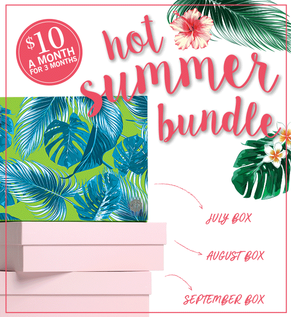 Note: Your subscription will begin with the July box. Code works on a 3-month subscription and you will be charged $30 upfront. Then the regular $21/month rate will apply.
