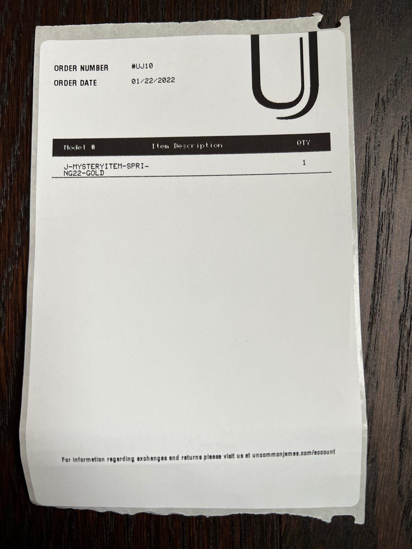 I am super happy with my Spring 2022 Uncommon James Mystery Item. For $20 (shipping is free) this is an outstanding deal.
