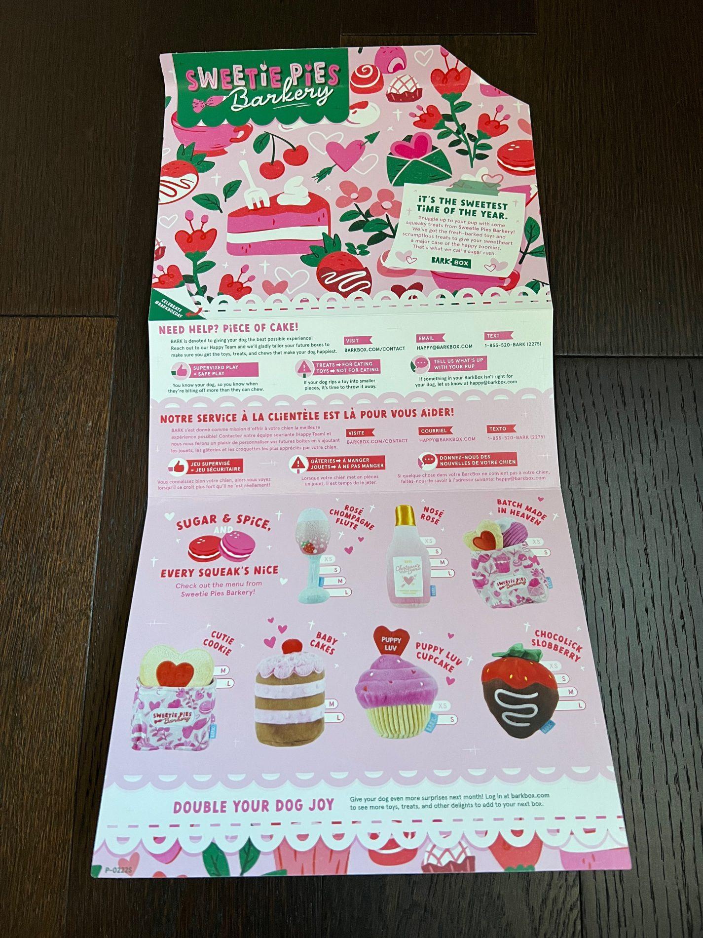 This month’s theme was “Sweetie Pies Barkery”. They always have the cutest themes! My February 2022 (Small Dog) BarkBox included the following items: