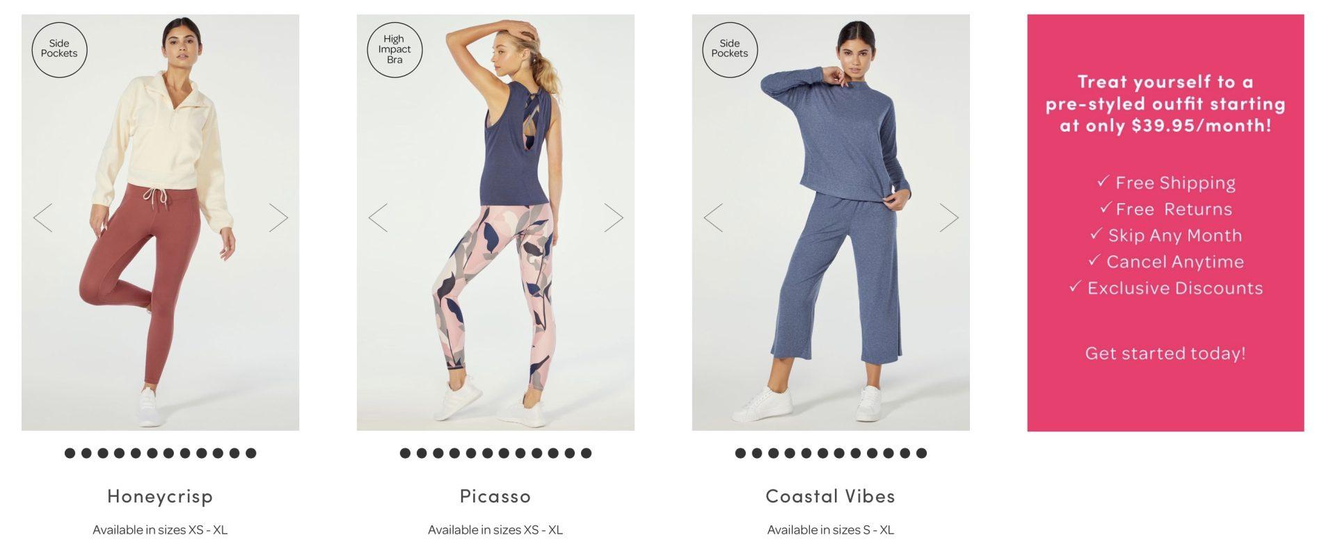Fabletics is the brainchild of actress and co-founder Kate Hudson, who partnered with the team behind JustFab to develop a multi-functional wardrobe solution for today’s active woman. Each month you’ll receive a new workout outfit (pieces you may select from include tops, tanks, tees, sports bras, hoodies, jackets, leggings, pants, and shorts) starting at $49.95. If you aren’t interested in any of the items that month, don’t need anything, etc. you are free to skip the month (just do so by the 5th of the month), and you won’t be charged which I totally love!