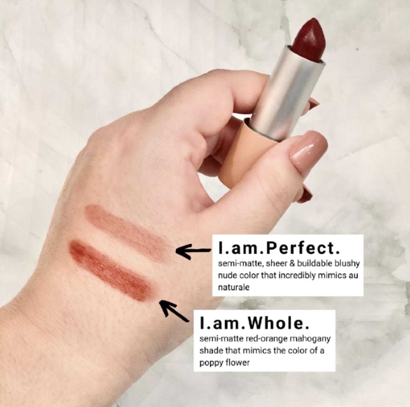 -I.Am.Perfect., a nude color with hints of pink from beets, raddish, tumeric and spirulina, or