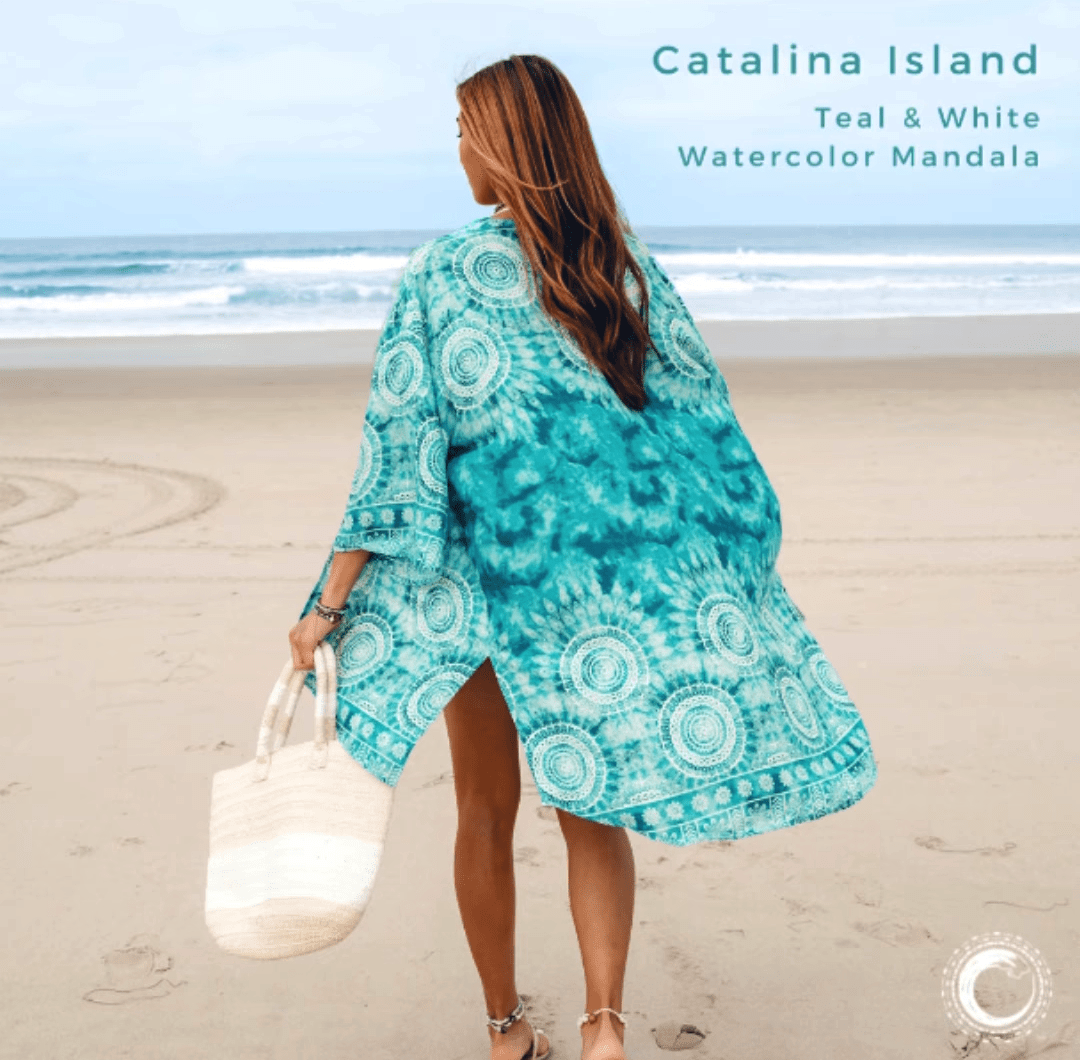 Catalina Island – Teal & White Watercolor Mandala