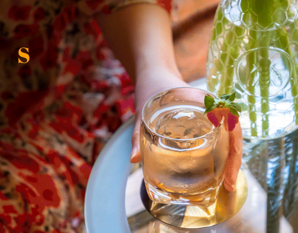 Within Michael Holiday’s Spiced Berry Sipper is a collection of compatible flavor sensations, with juicy strawberry linking up with the Cognac’s fruitiness and cardamom, anise, and Angostura bitters stepping up its spiced qualities.