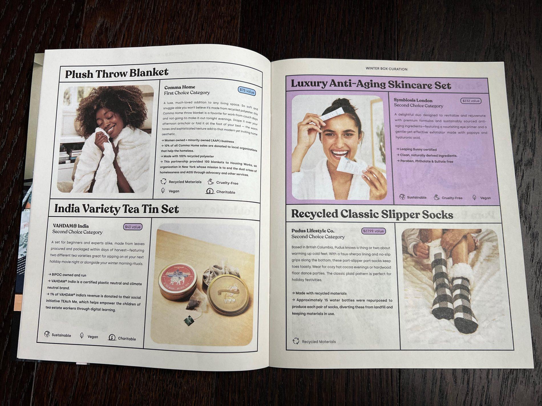 Alltrue (formerly known as CAUSEBOX) is a quarterly socially conscious subscription box. Each full size seasonal box is a quarterly curation of 6+ products that are community focused, ethically made, environmentally conscious, and impact driven — ranging from clean beauty to ethical homewares and cruelty-free accessories. This collection is packaged in an artist-designed box and comes along with their Guide to the Season, Brand Booklet, and a seasonal, editorial print magazine, titled All Good Things, dedicated to living consciously.