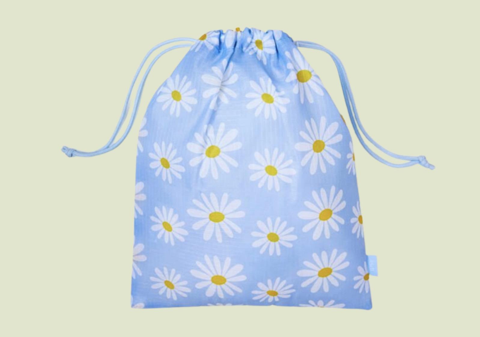 In a similar fashion, the outer fabric of April’s Glam Bag Plus utilizes material made from recycled plastic bottles—helping to keep waste out of landfills. Aside from being easy on the planet, the adorbs bag is easy on the eyes. White-yellow daisies are printed on a sky blue backdrop, giving it a sunny ‘60s feel that can be paired with just about everything in your spring and summer wardrobes. “I’m going to bring this Glam Bag Plus drawstring bag to my Sunday’s farmer market to get myself some beautiful flowers, fresh fruits, and an iced coffee to enjoy my Sunday morning,” Wong says, sparking ideas for our weekend plans too.”