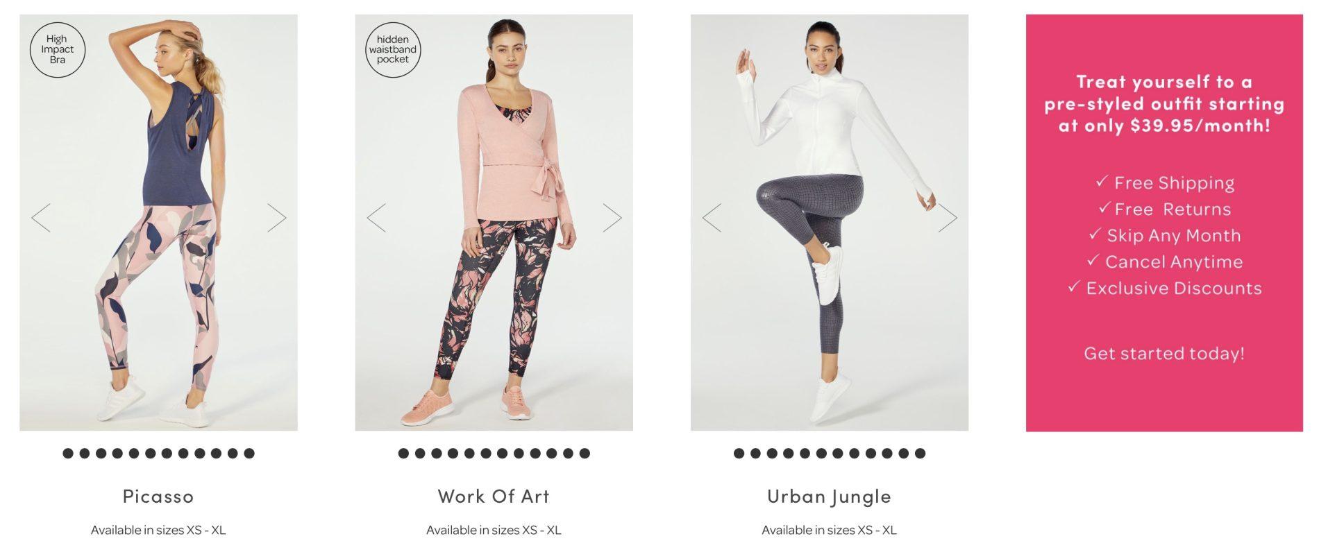 Fabletics is the brainchild of actress and co-founder Kate Hudson, who partnered with the team behind JustFab to develop a multi-functional wardrobe solution for today’s active woman. Each month you’ll receive a new workout outfit (pieces you may select from include tops, tanks, tees, sports bras, hoodies, jackets, leggings, pants, and shorts) starting at $49.95. If you aren’t interested in any of the items that month, don’t need anything, etc. you are free to skip the month (just do so by the 5th of the month), and you won’t be charged which I totally love!