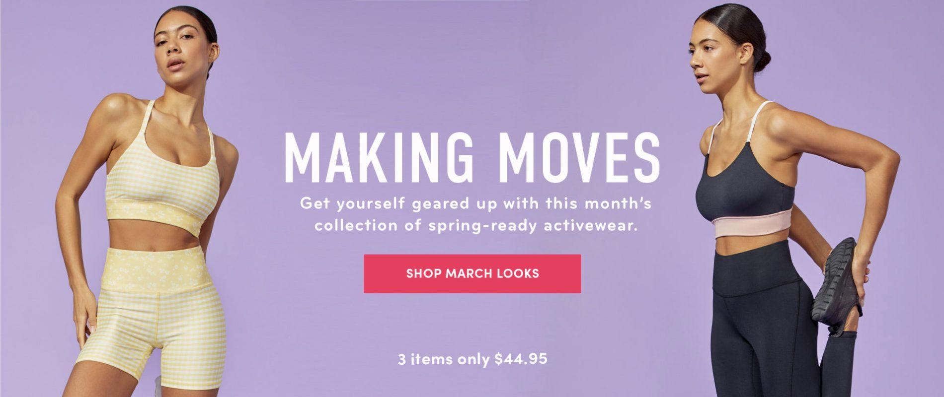 March 2022 Fabletics outfits are up! Members have until the 5th of the month to make a selection or “Skip” that month.