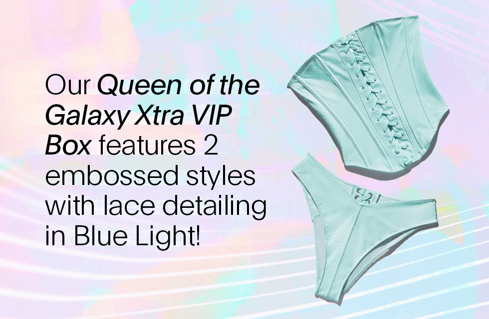 Our Queen of the Galaxy Xtra VIP Box features 2 embossed styles with lace detailing in Blue Light!