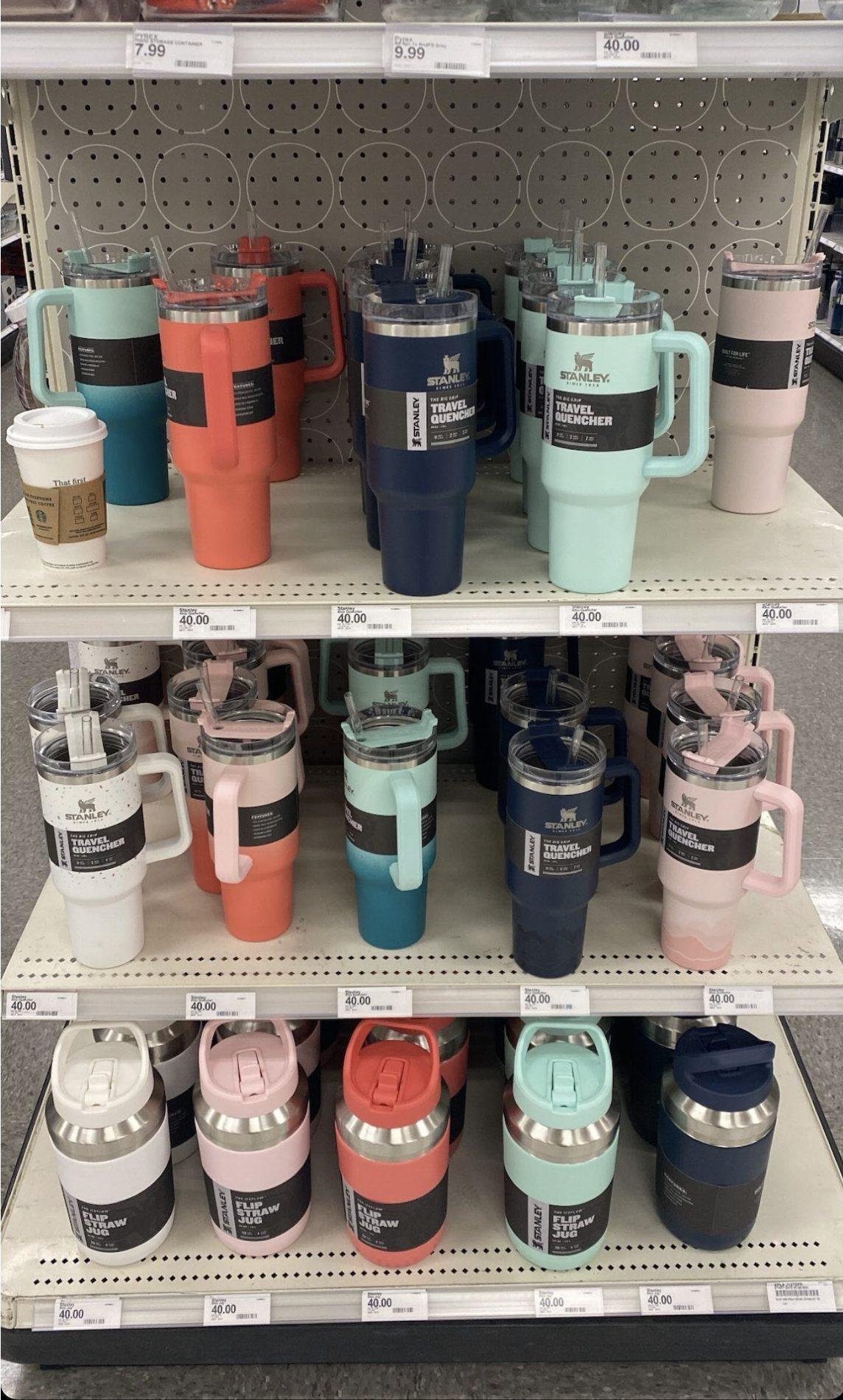 -Did you hear that Target now carries Stanley Adventure Quencher 40oz Tumblers? So far (to my knowledge anyway), they have only been spotted in stores on the West Coast (California and Washington) and someone in Alabama found them too. But they aren’t online yet. Rumor has it they will be online “soon” and I am HOPING all stores ending up carrying them! Thanks for the picture (and for shipping me one) Julia!!!!!!!!