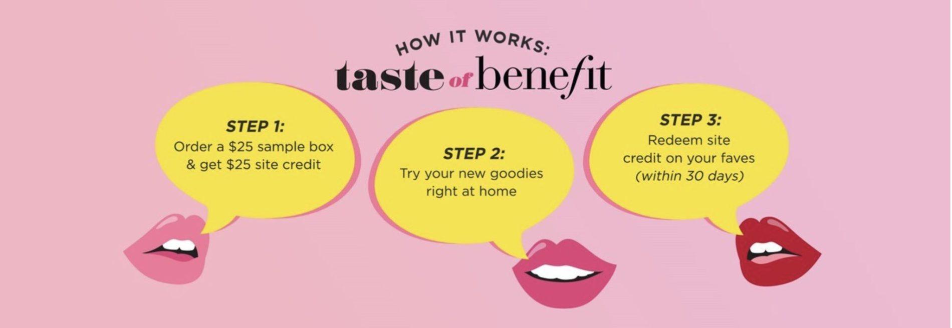Benefit has just launched two new Taste of Benefit Sample Boxes. Boxes are $25/each and include a $25 site credit. Two options are available: