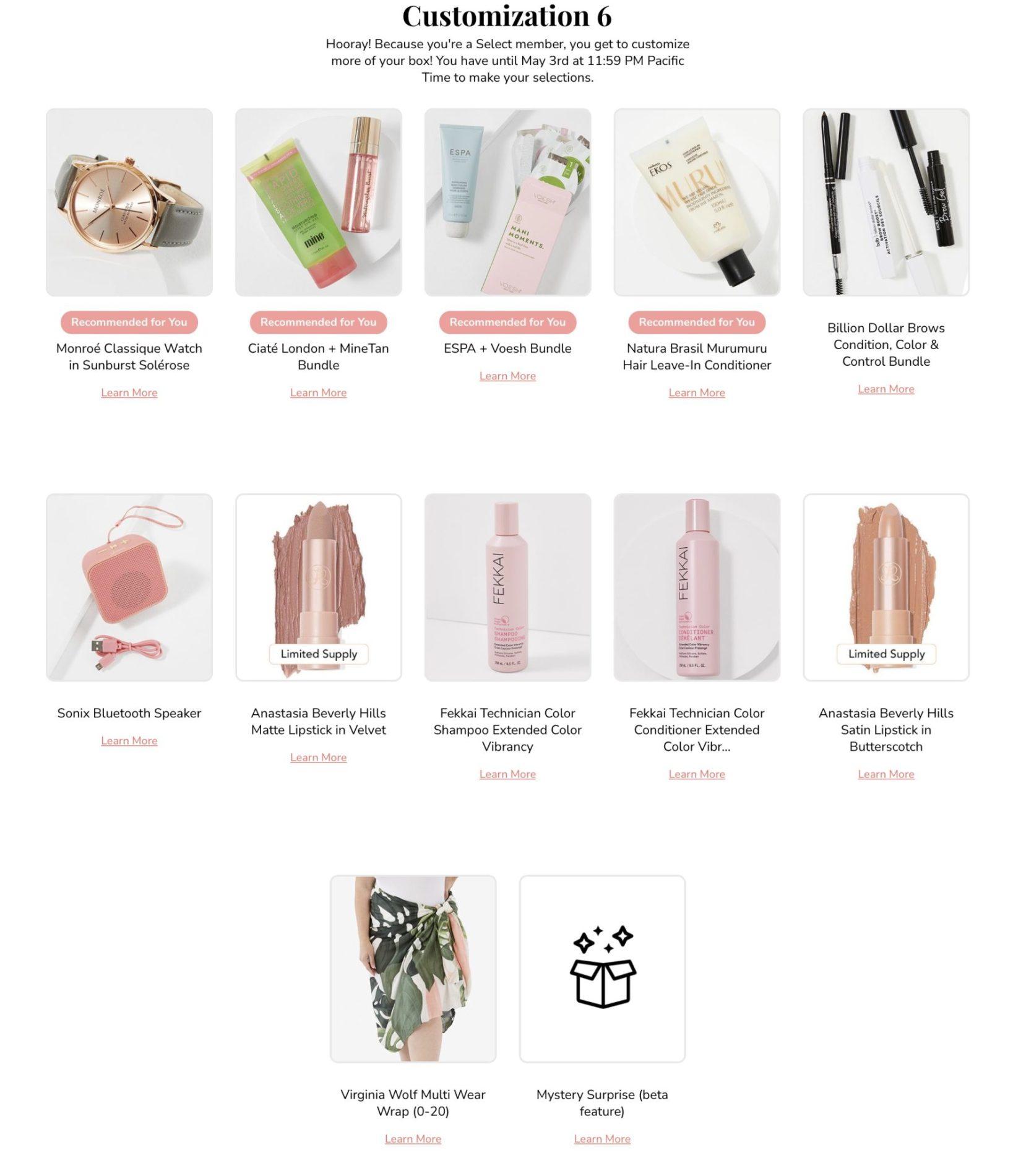 It is Summer 2022 customization time for Annual Subscribers of the fabfitfun Box! Selections are as follows:
