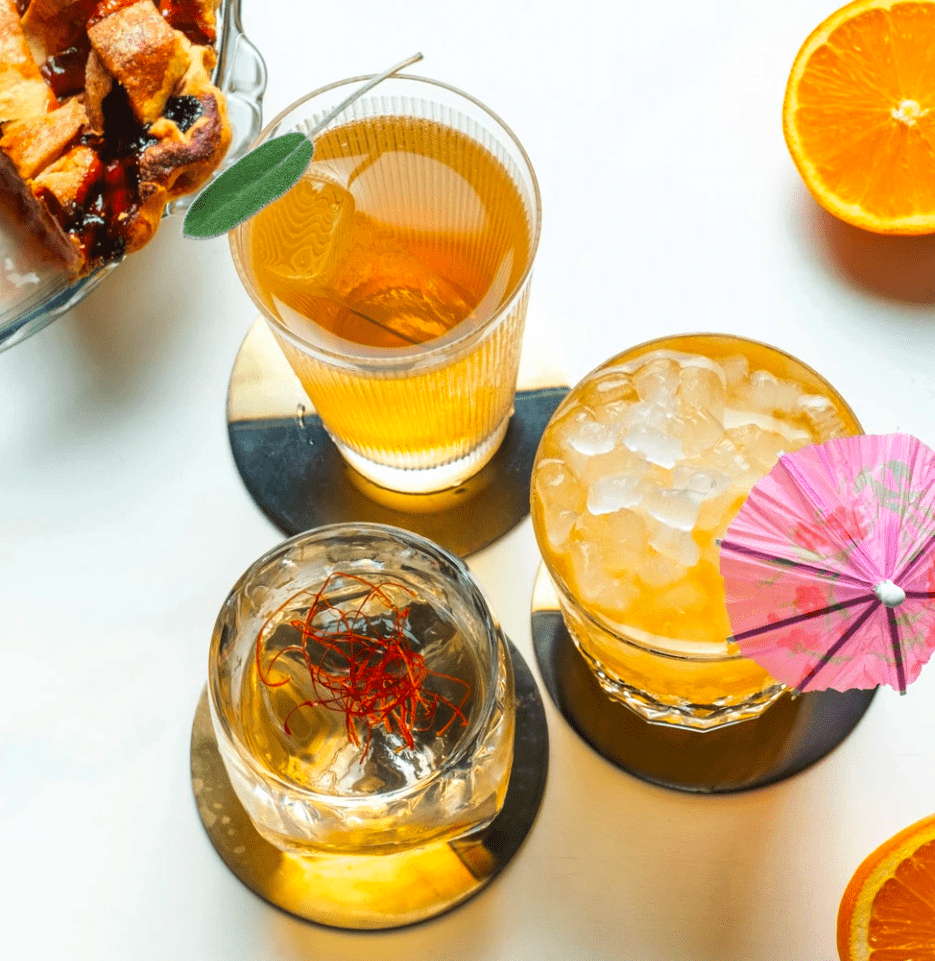 The citrus is certainly strong with Robert Sickler in this cocktail he’s invitingly labeled a “fun patio pounder.” Exactly as it should be with The Caloosahatchee, an homage to the southern Florida river whose banks he grew up on, surrounded by fresh fruit trees. His chosen bounty to accompany bourbon on a mound of crushed ice is orange two ways (in a sparkling soda and smoked orange bitters), along with a lemongrass-ginger-lemon syrup that brings dynamic depth to all that satisfying sunshine.