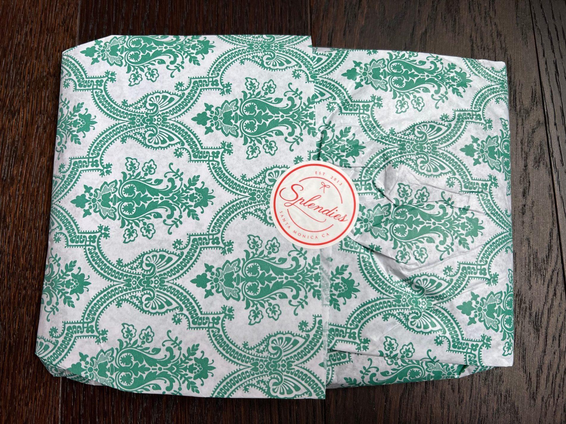 All shipments arrive neatly wrapped in tissue paper with a Splendies sticker. They also now include a hard piece of hardboard so nothing shifts around.