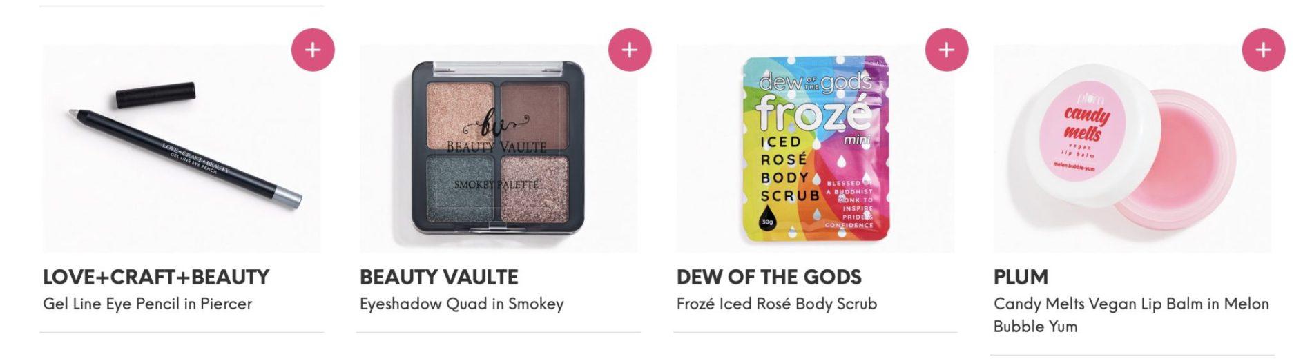 ipsy sends its Glam Bag members a beautiful Glam Bag with 4-6 deluxe samples and full-sized beauty products. The Glam Bag Plus option sends 5 full-size products and the Glam Bag Ultimate send 12 beauty products.