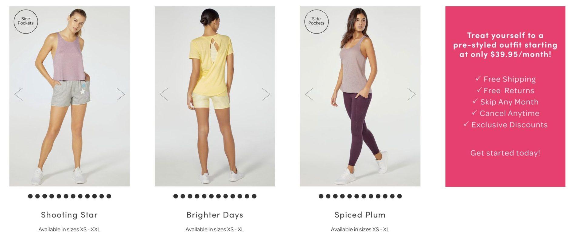 Fabletics is the brainchild of actress and co-founder Kate Hudson, who partnered with the team behind JustFab to develop a multi-functional wardrobe solution for today’s active woman. Each month you’ll receive a new workout outfit (pieces you may select from include tops, tanks, tees, sports bras, hoodies, jackets, leggings, pants, and shorts) starting at $49.95. If you aren’t interested in any of the items that month, don’t need anything, etc. you are free to skip the month (just do so by the 5th of the month), and you won’t be charged which I totally love!