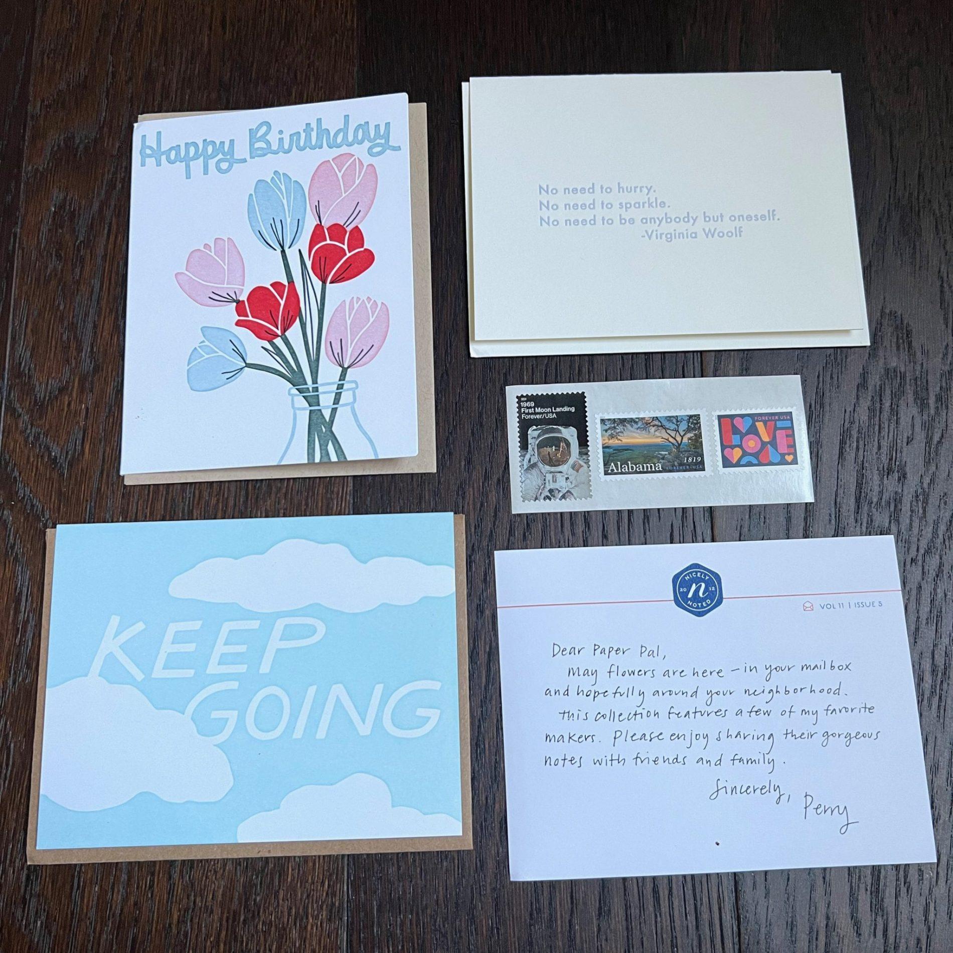 Nicely Noted is a stationery subscription service that delivers a curated batch of letterpress cards and stamps to your mailbox every month.