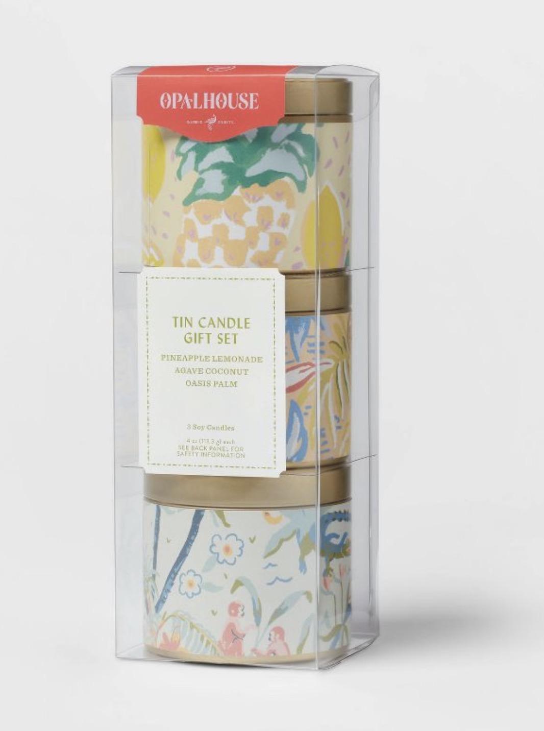 –OpalHouse 4oz Mini Grab Tin with Patterned Wrap Label Gift Set ($10): My intention was to give each teacher at barre (I think we have 18) one of these little candles from the gift set for teacher appreciation week. But it shipping got delayed, so now I am not so sure what to do. Maybe just gift them late??