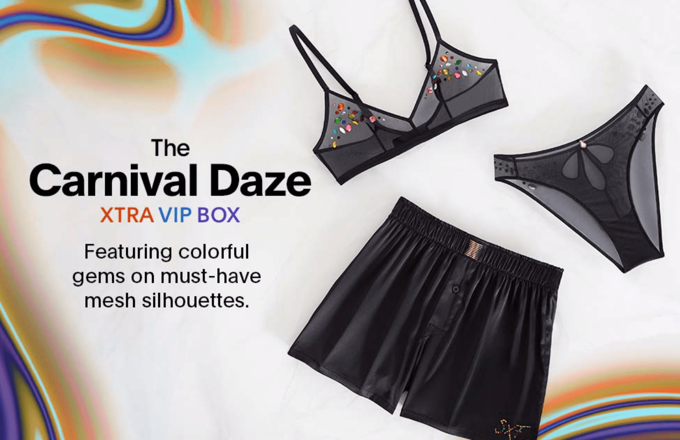 Savage x Fenty Xtra VIP Box is a monthly lingerie subscription by Rihanna. They celebrates fearlessness & inclusivity and feature sizes up to 3X. Each month you’ll receive a selection of lingerie. Shop, or log into your account to ‘Skip the Month’ by the 5th of each month, and you won’t be charged. If you don’t ‘Skip’, your payment method will be charged $49.95 on the 6th of each month and you will receive one VIP Member Credit valued at $49.95.