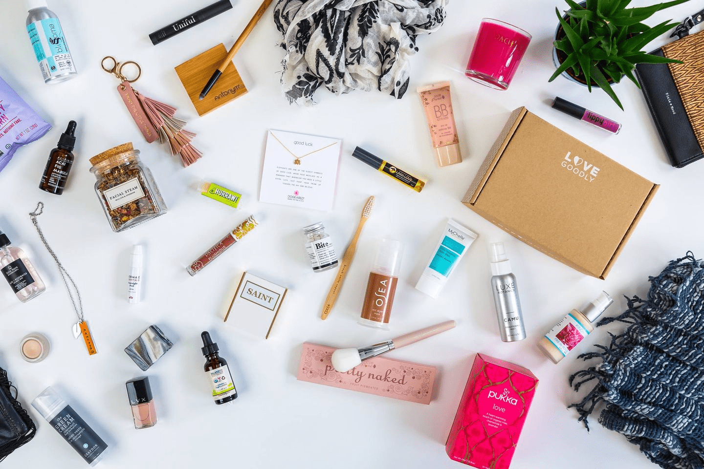 LOVE GOODLY (Essentials: $34.95/bi-monthly; VIP: $48.95/bi-monthly) delivers natural, eco-friendly products to your doorstep. All Love Goodly Essential boxes are carefully curated with 4-5 full size products, focused on nontoxic, cruelty free and vegan beauty and skincare, as well as an occasional eco style accessory, wellness product or healthy snack.