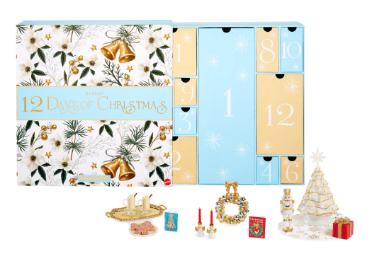 Calling all Barbie fanatics! Check out this incredible holiday collectible! The 12 Days of Christmas Barbie Doll and Accessories Advent Calendar is $160 and includes a holiday Barbie along with cozy accessories like drink mugs and candles are waiting to reveal their holiday glow and two vintage-inspired golden outfits that let you design three fashion looks.