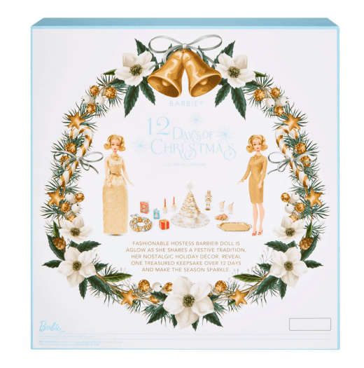 It’s the most wonderful time of the year, and Barbie is here to bring a bit of holiday magic each day with the 2024 Barbie Signature 12 Days of Christmas Doll. Darling numbered drawers in the package open to reveal unique gifts, starting with the holiday hostess herself, sparkling and ready to welcome her guests with two vintage-inspired golden outfits that let you design three fashion looks.