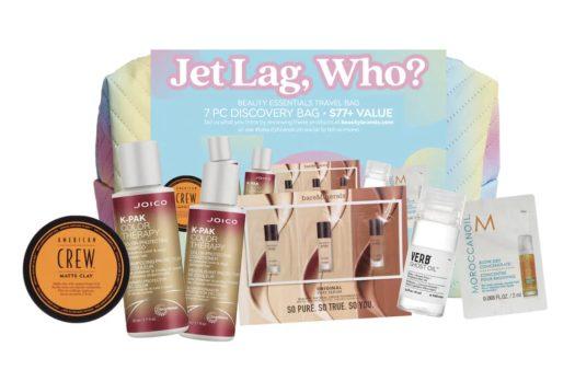 Beauty Brands Jet Lag, Who? Discovery Bag contains 7 deluxe-size beauty items.