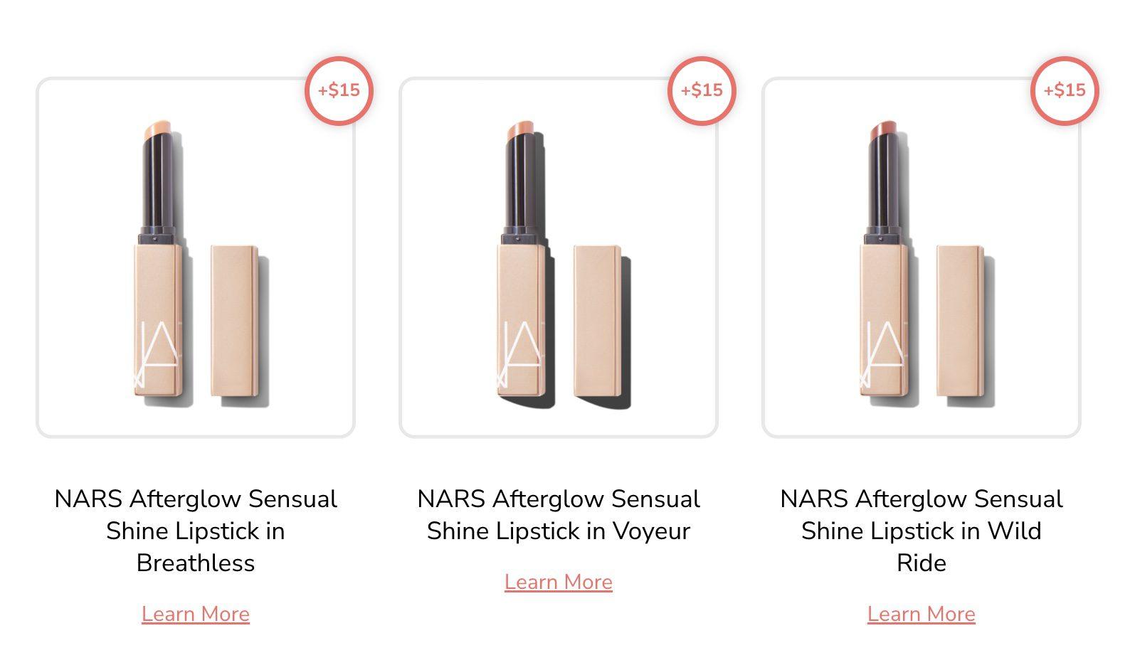 –NARS Afterglow Sensual Shine Lipstick (Breathless, High Gear, Voyeur or Wild Ride) ($32)