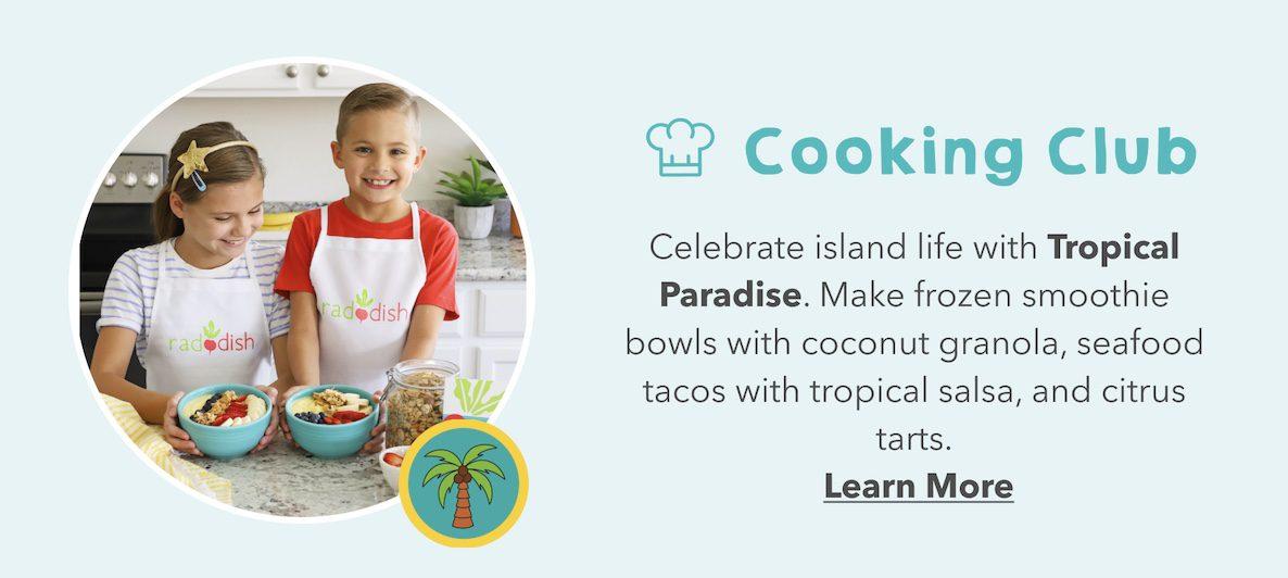 Raddish Kids is a monthly subscription box for kids 4 to 14+! Young children ages 4 to 6 can enjoy working alongside an adult in the kitchen. Kids and tweens ages 7 to 12 can explore their culinary curiosity and take on an exciting role preparing family meals. Each box includes, illustrated recipe guides, 3 culinary skill cards, a creative kitchen project, kid-friendly tools and collectibles (see a sample) such as Table Talk cards, a culinary tool, and an iron-on Raddish patch. In addition, you’ll receive a free Raddish apron with the purchase of a 6 or 12-month membership (additional aprons may be purchased during checkout).
