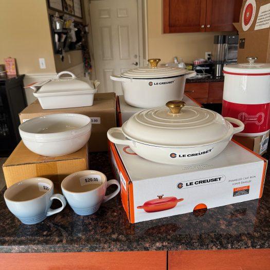 Mystery Box #2 had a value of $1,130! Just incredible. The dutch oven from this box is the largest size that Le Creuset offers and this picture doesn’t even come close to showing how large it is!