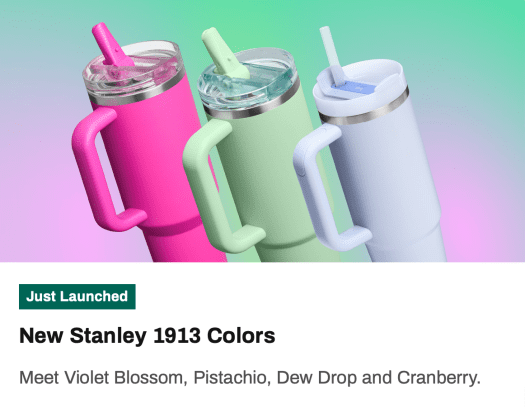 We’ve got some new Stanley Tumbler colors available at Dick’s Sporting Goods. Choose between Dew Drop, Cranberry, Violet Blossom and Pistachio!