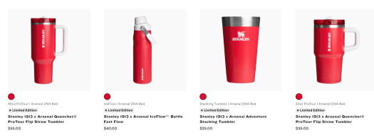 The new Stanley 1913 x Arsenal Collection is now available. The collection includes the following pieces: