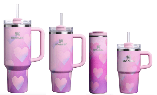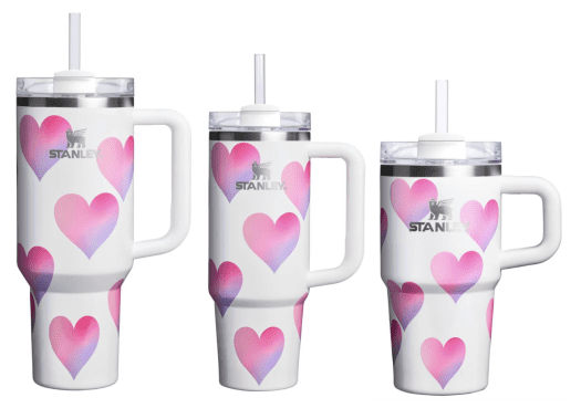 The Stanley Stanley Valentine’s Day collection drops this Sunday (12/28/25) at 12am PT / 3am ET. The collection includes three new shades – Frost Heart Gradient, Rouge Heart Gradient and Powder Pink Heart Gradient.