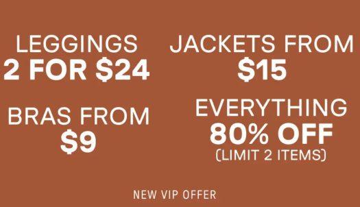 Fabletics is offering new members 2 for $24 leggings, $9 bras, $15 jackets and 80% off!