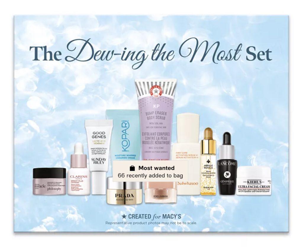 Macy’s has a new Created for Macy’s Set! The 11-Pc. Dew-ing the Most Skincare Set is $49.50 ($42.08 with coupon code VIP) and includes: