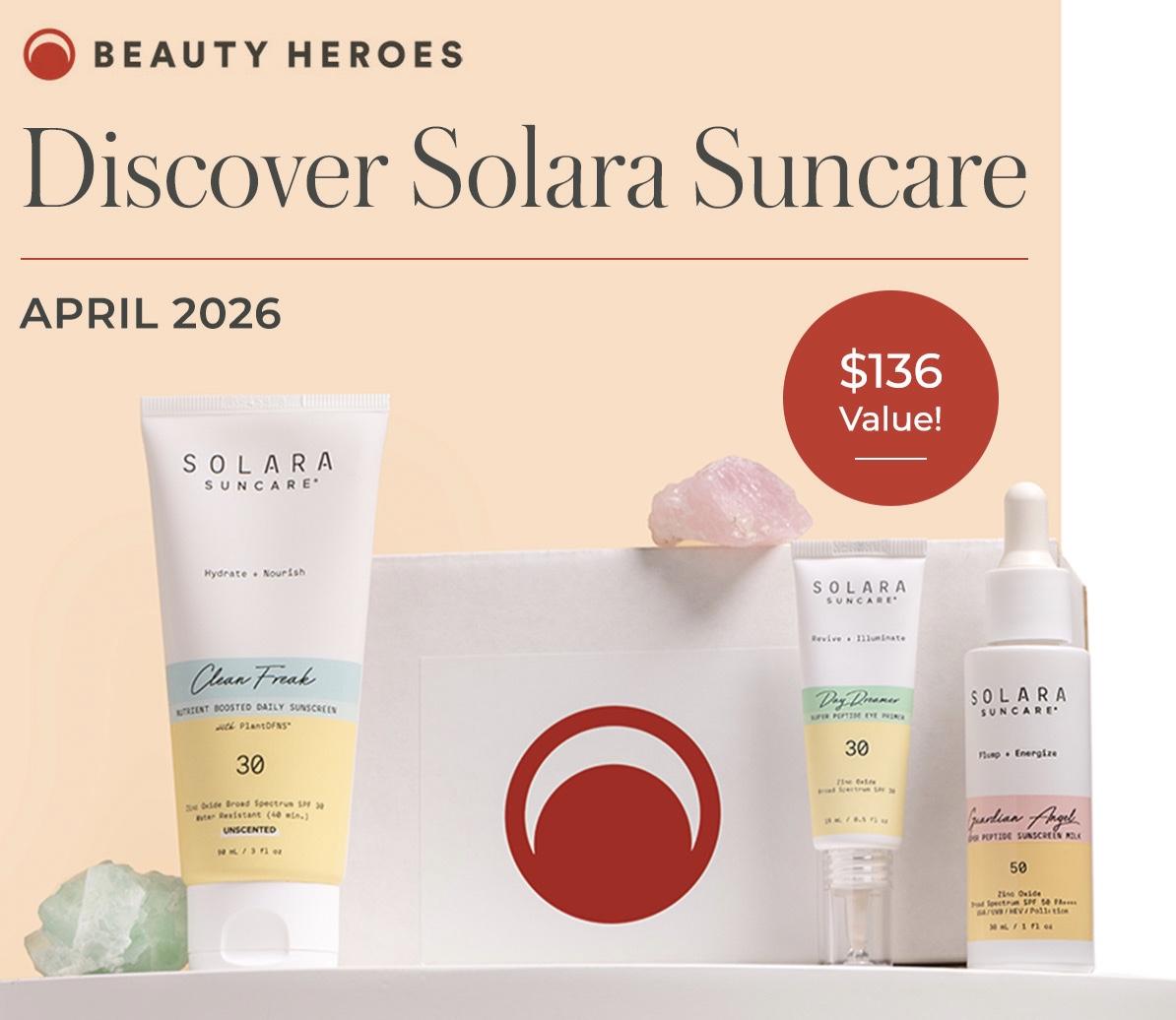 The April 2026 Beauty Heroes box has been revealed! The April brand is Solara Suncare.