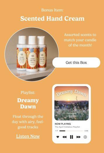 We have full spoilers for the April 2026 Vellabox! It will include scents from Meadow Candle Studio (scent will be based on your preference):